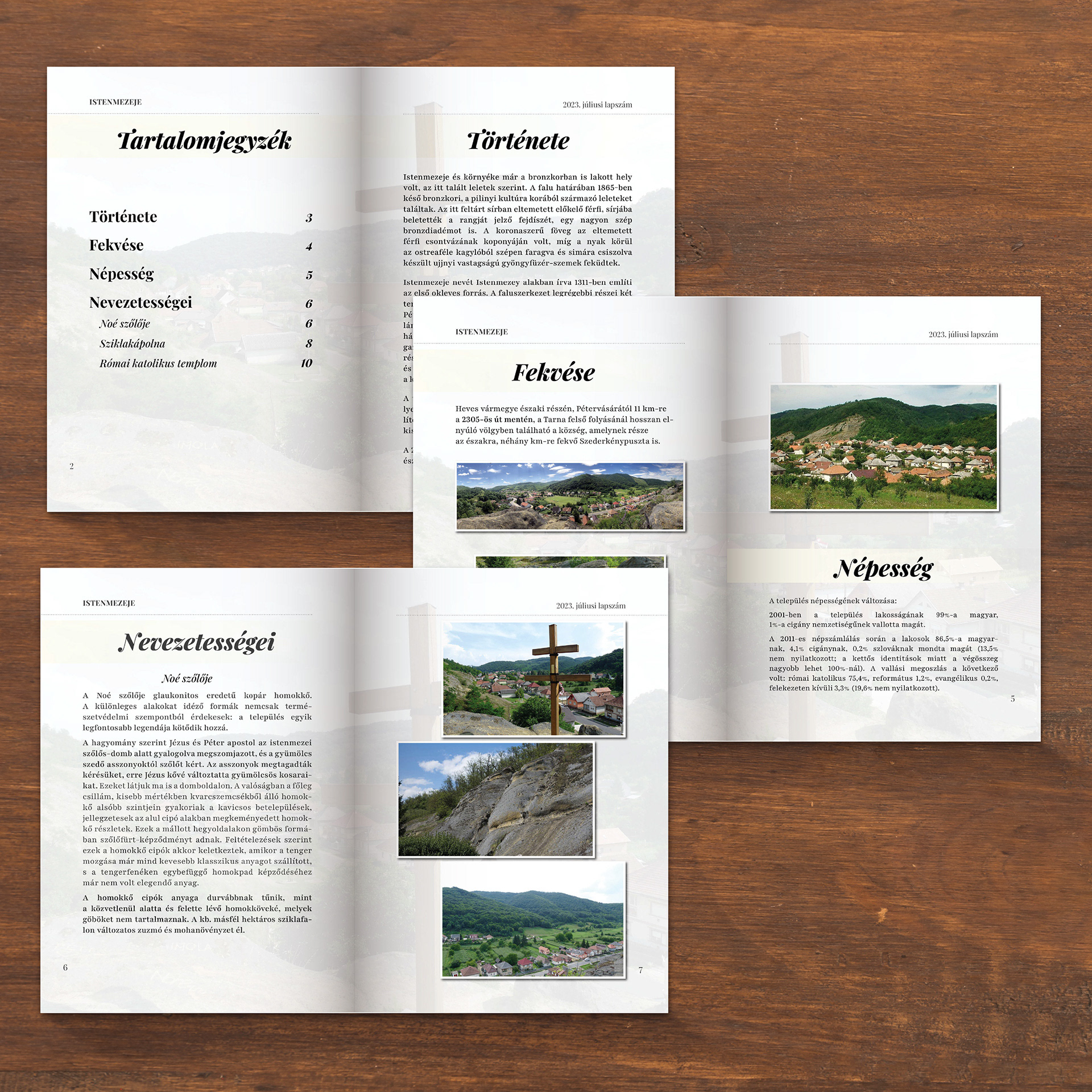 Az Istenmezeje turisztikai kiadvány egy személyes kötődésű, gyakorló projekt volt számomra. A tervezés során egy kis település természeti, kulturális és szellemi értékeinek vizuális bemutatására törekedtem, letisztult, mégis hangulatos grafikai eszközökkel. Célom az volt, hogy az információk áttekinthetőek legyenek, miközben a kiadvány megőrzi a hely autentikus karakterét.