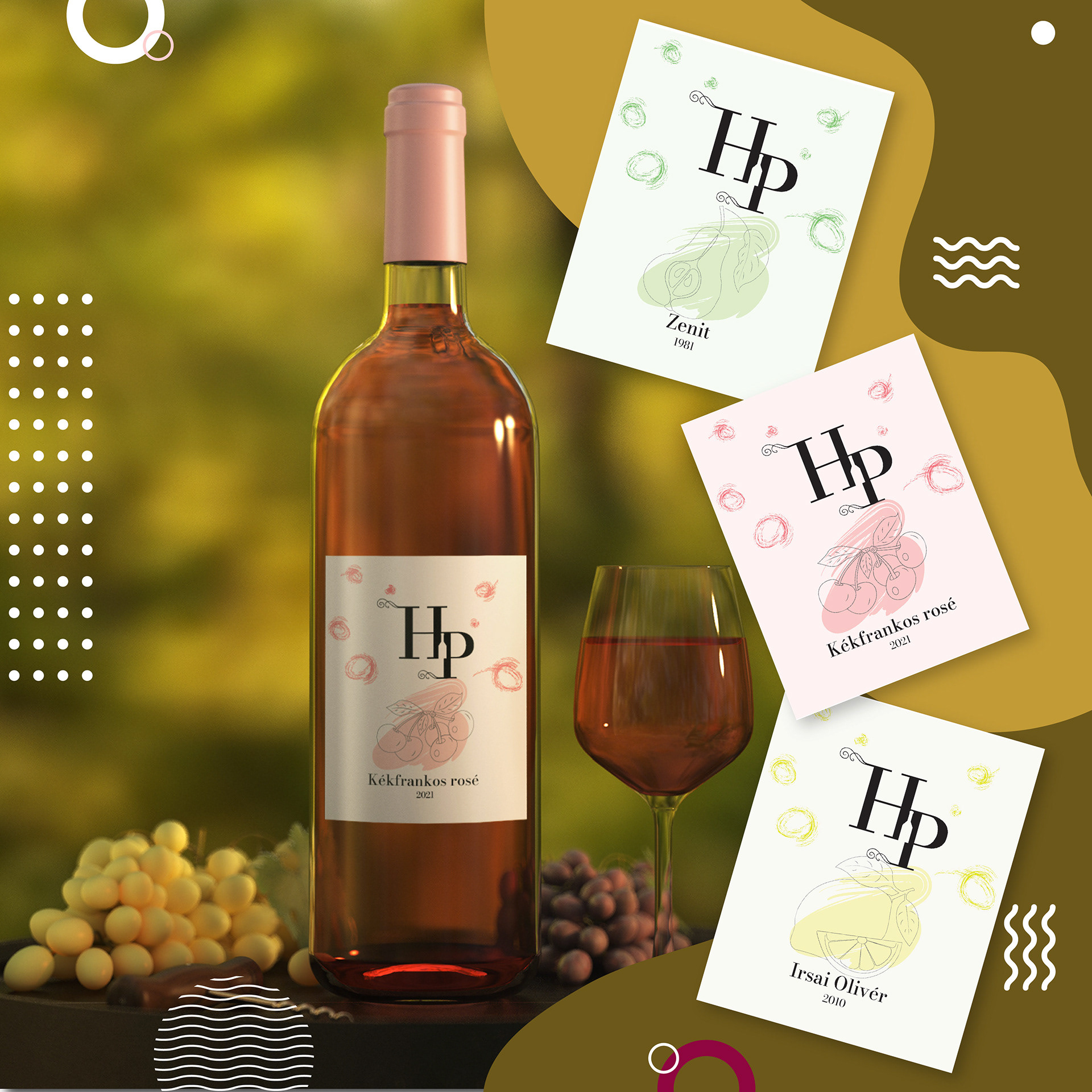 A Hévízi Pincészet logójának és címkéjének tervezésekor a borok könnyed, gyümölcsös karakterét szerettem volna vizuálisan megjeleníteni. A szőlőkacs motívum és a pasztell színvilág a frissességet,