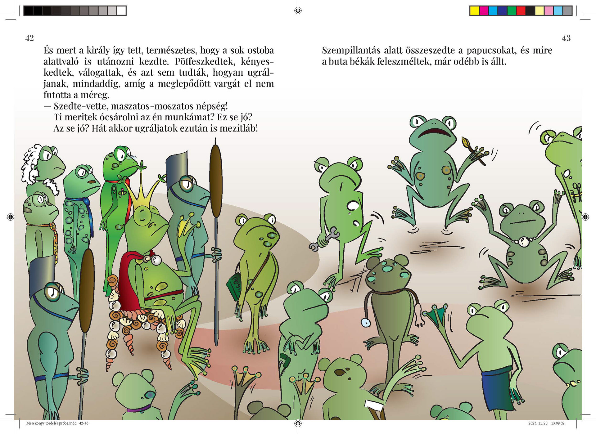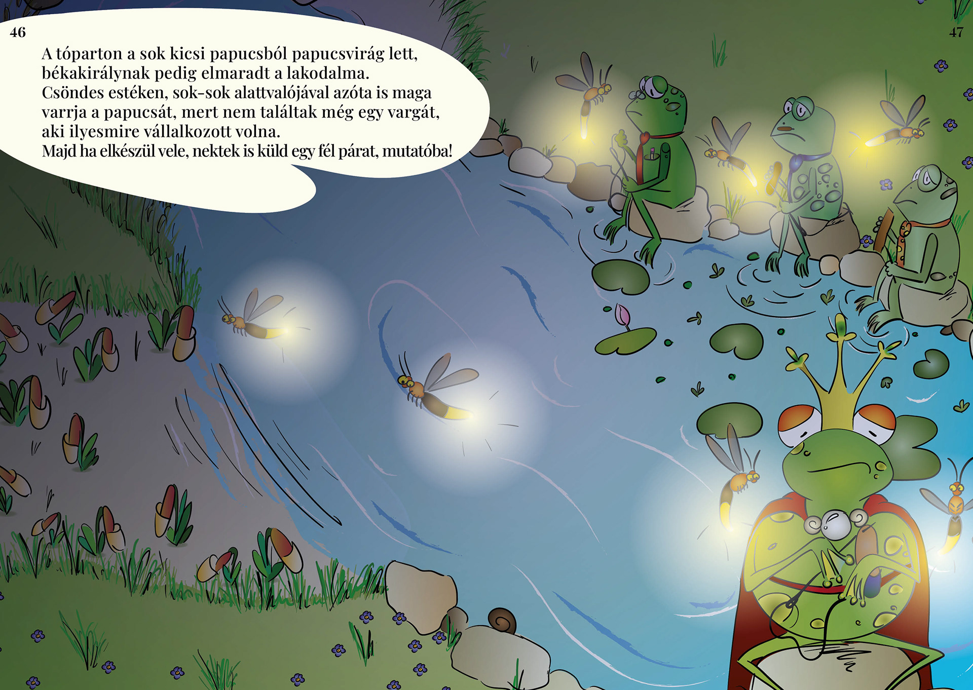 A mesekönyv saját projektként és egyben vizsgaremekként készült, amely két illusztrált mesét tartalmaz. A könyv teljes vizuális és szerkesztési folyamata az én munkám volt: az illusztrációktól a tördelésen és tipográfián át egészen a nyomdai előkészítésig.