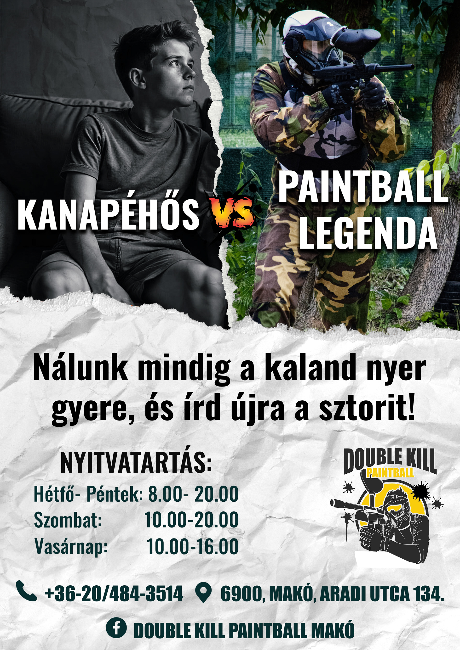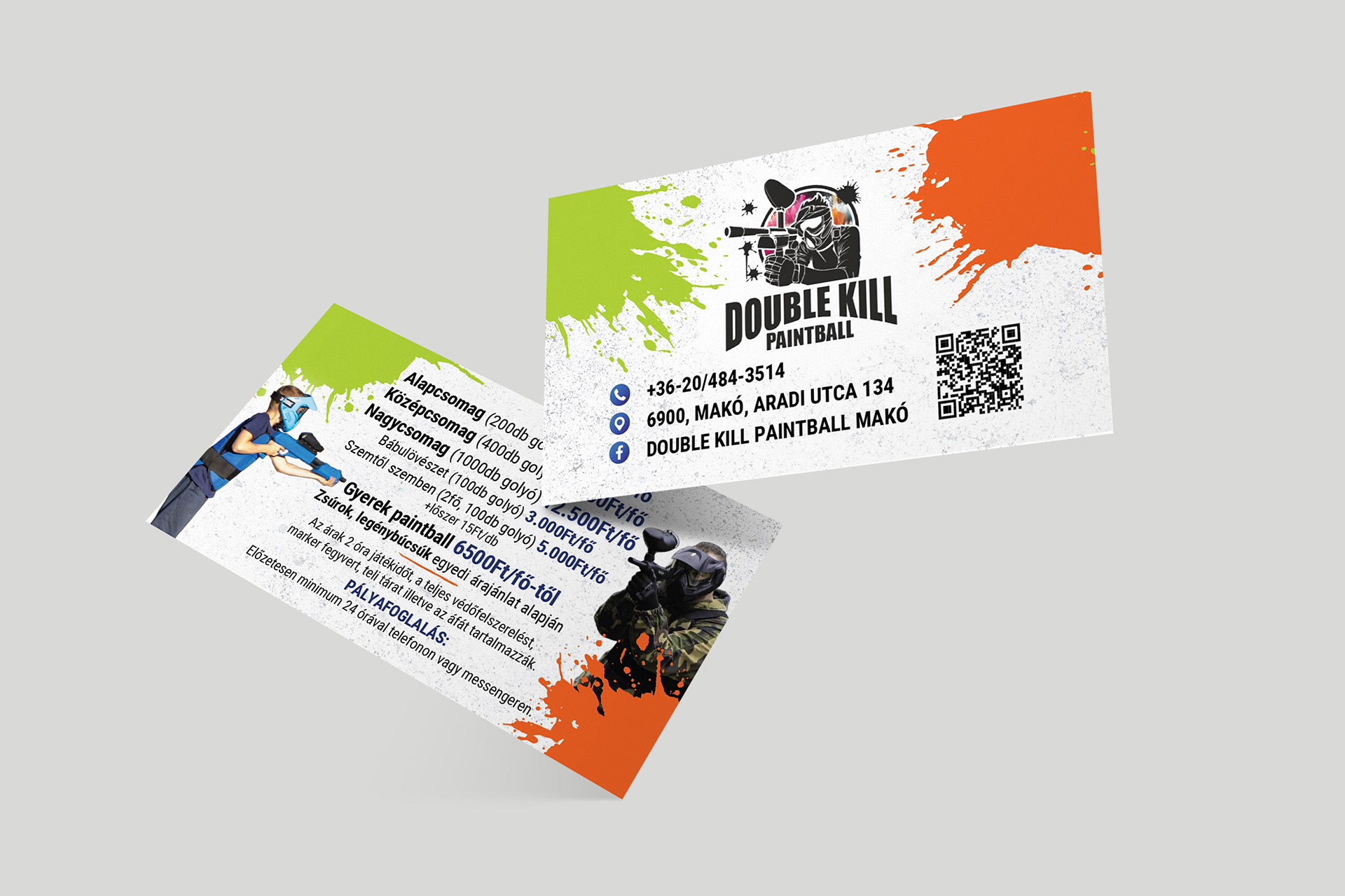 Double Kill Paintball pálya számára készítettem grafikai és illusztrációs anyagokat, amelyek az online és offline felületeken egységes vizuális megjelenést támogattak. A projekt célja egy karakteres, könnyen felismerhető stílus kialakítása volt, amely megszólítja a fiatalabb és a családos célközönséget egyaránt.
